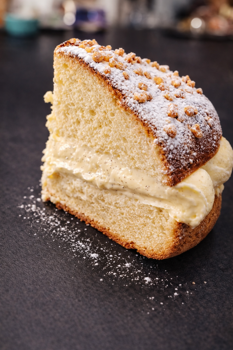 Composition : brioche moelleuse, sirop à la fleur d'oranger et crème diplomate à la fleur d'oranger